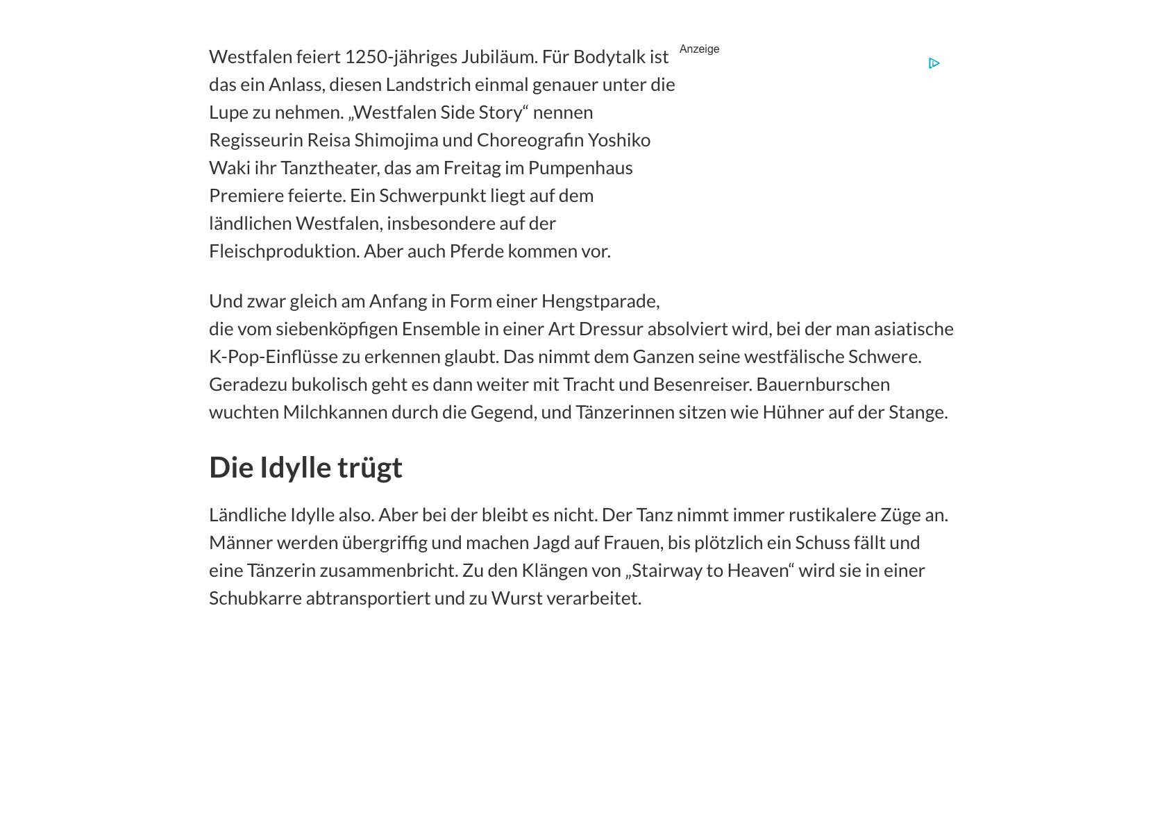 Gewohnt drastisch: „Westfalen Side Story“ von Bodytalk und Reisa Shimojina